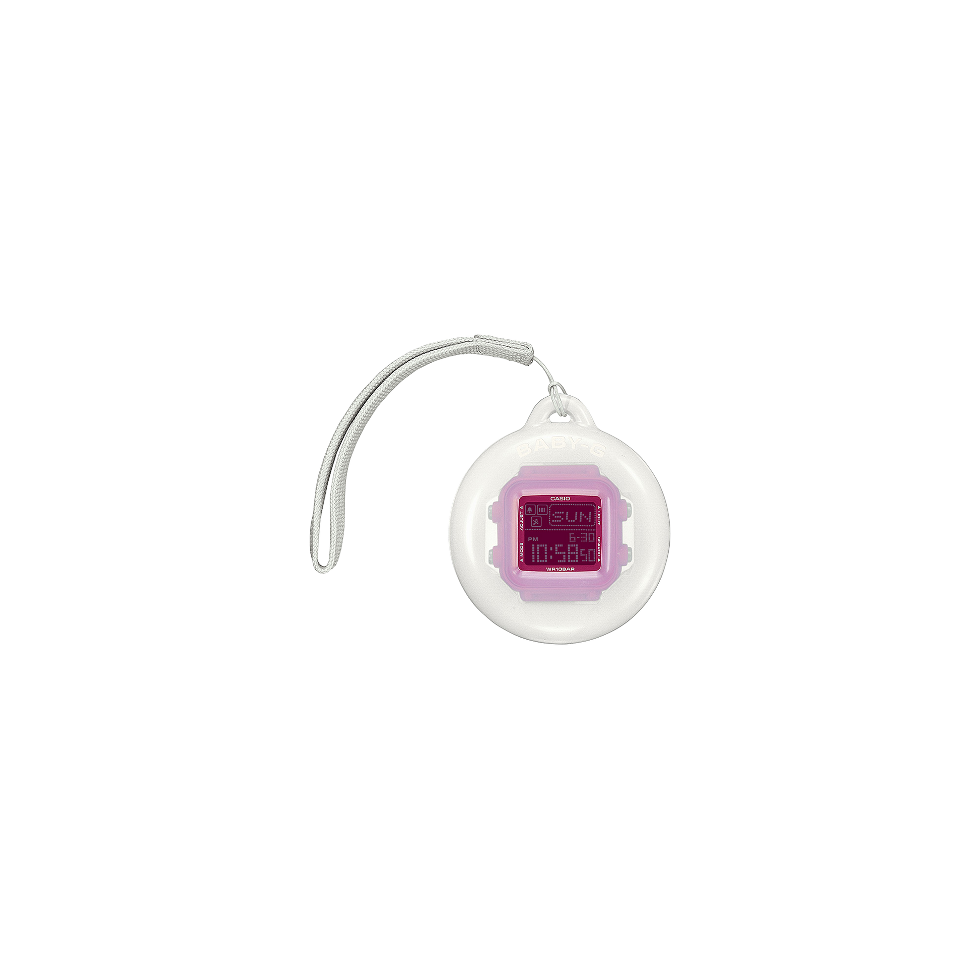 Mix, match, make it your own! A brand-new BABY-G + PLUS series to celebrate the 30th anniversary of BABY-G in 2024. The BGD10K, a compact digital watch and case holder set, comes with bezel and band that can easily be detached — no need for any special tools. Wear it as a wristwatch or place the center case into the holder, turning the watch into a unique time-telling charm. Hang it from your waist or bag — enjoy the freedom of mixing and matching to suit your mood and outfit each day. Pop-casual color variations are inspired by the trendy Y2K fashion colors that are back in style. Add stickers to the silicone holder; decorate it your way to really make it your own. Decorate the top and sides of the silicone holder’s acrylic panels to really make it your own. The LCD on the upper right rotates at 30-second intervals through five retro-style pixel-art animations featuring a cast of characters that includes a dog and cat for an added touch of fun. Not just amusing, but practical, as well. The BGD10K also delivers shock-resistant construction, 100-meter water resistance, and plenty of handy functions. * Silicone holder with strap ・Store in cool, dry place out of direct sunlight. ・Attaching metal straps may damage strap holes. ・Wrinkle-like patterns may appear on surface due to the manufacturing process that gives the holder its glossy finish. * Decorating the holder ・Adding decoration to the watch itself is not recommended. ・Some stickers may not adhere well to holder. ・Before applying stickers, wipe the holder to remove surface dust, oil, liquid, and other substances. ・Stickers may peel away depending on where on the holder they are placed and how the holder is used. ・Stickers left on the holder for a long period may leave adhesive residue behind.