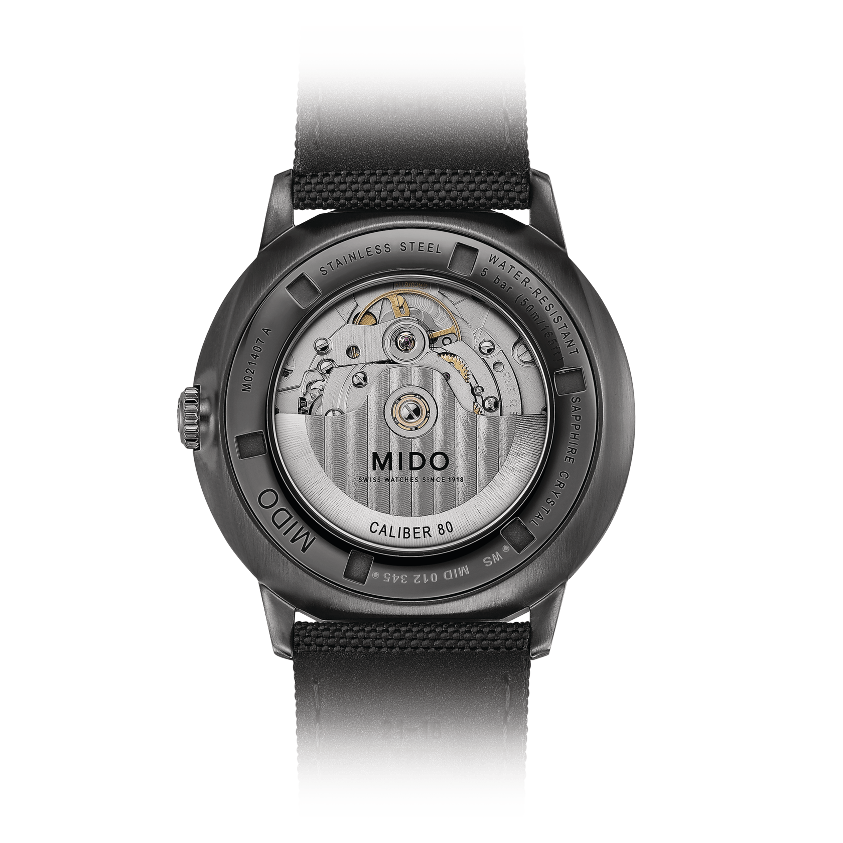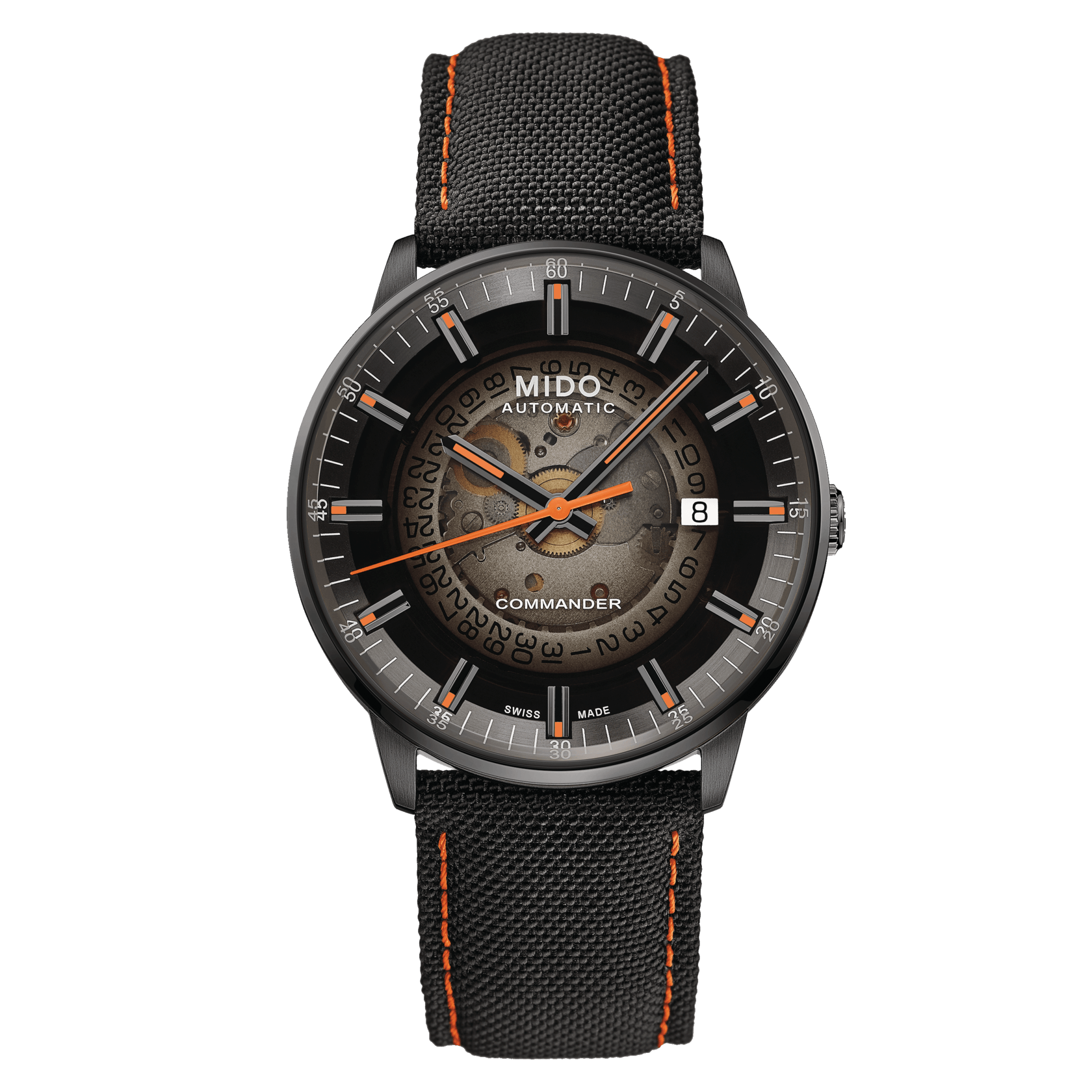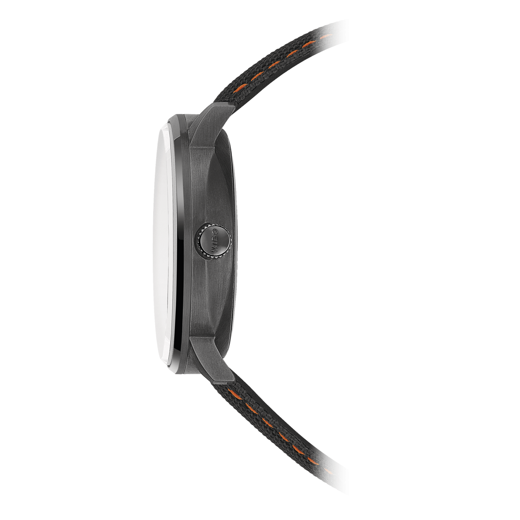 With the Commander Gradient Swiss watch, watchmaking mechanics become visible thanks to a transparent acrylic dial - a first in this iconic collection. The components of the Caliber 80 can be admired on the dial side as well as on the rear thanks to a transparent case back. Adorned with an original gradated smoky effect, the dial becomes increasingly opaque around the edges while the date at 3 o'clock stands out perfectly.