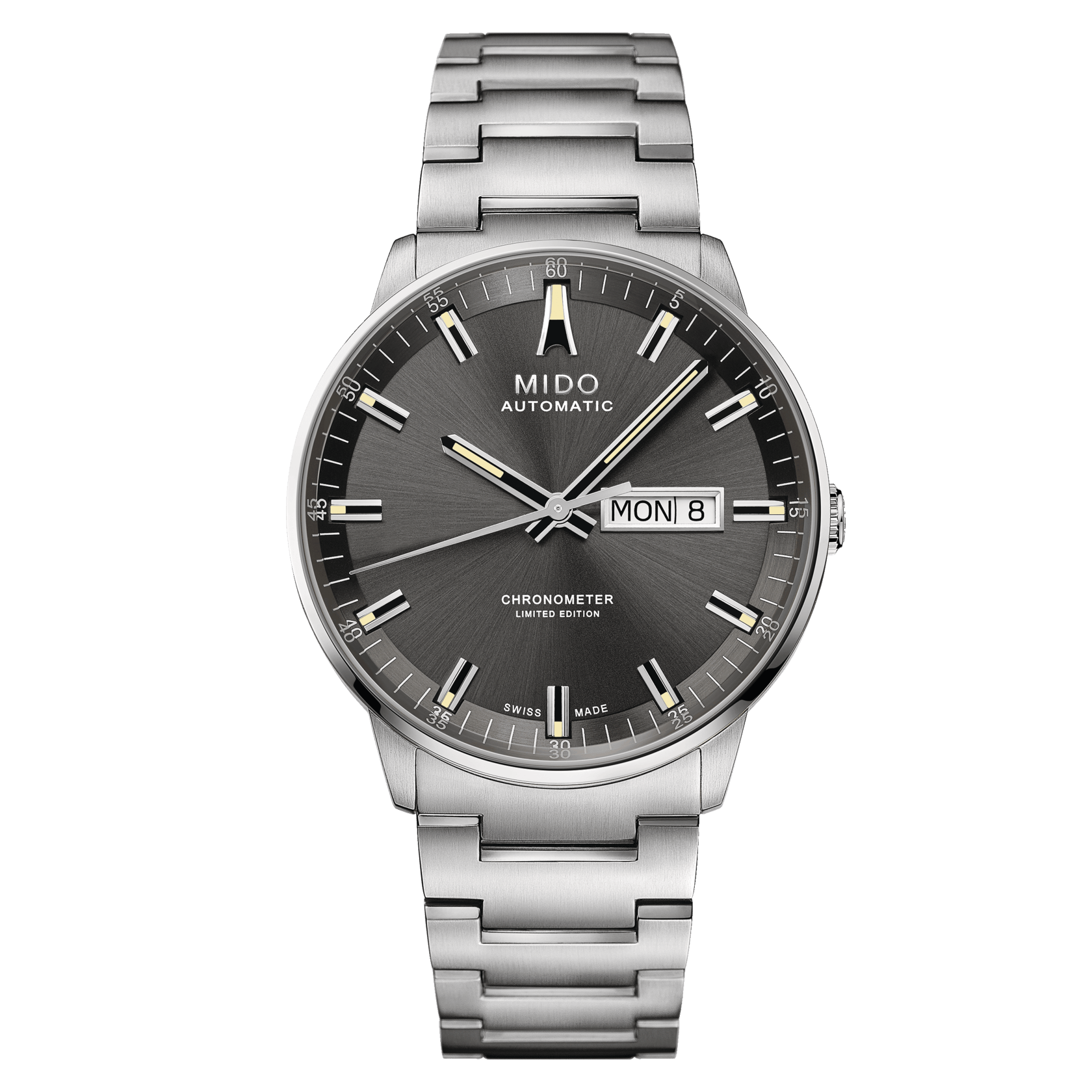 This Commander Swiss watch adapts the iconic piece to the modern codes. Featuring the latest MIDO logo and a graduated dial, it also has a sapphire bevelled glass. Its automatic movement is chronometer certified and offers up to 80 hours of power reserve.