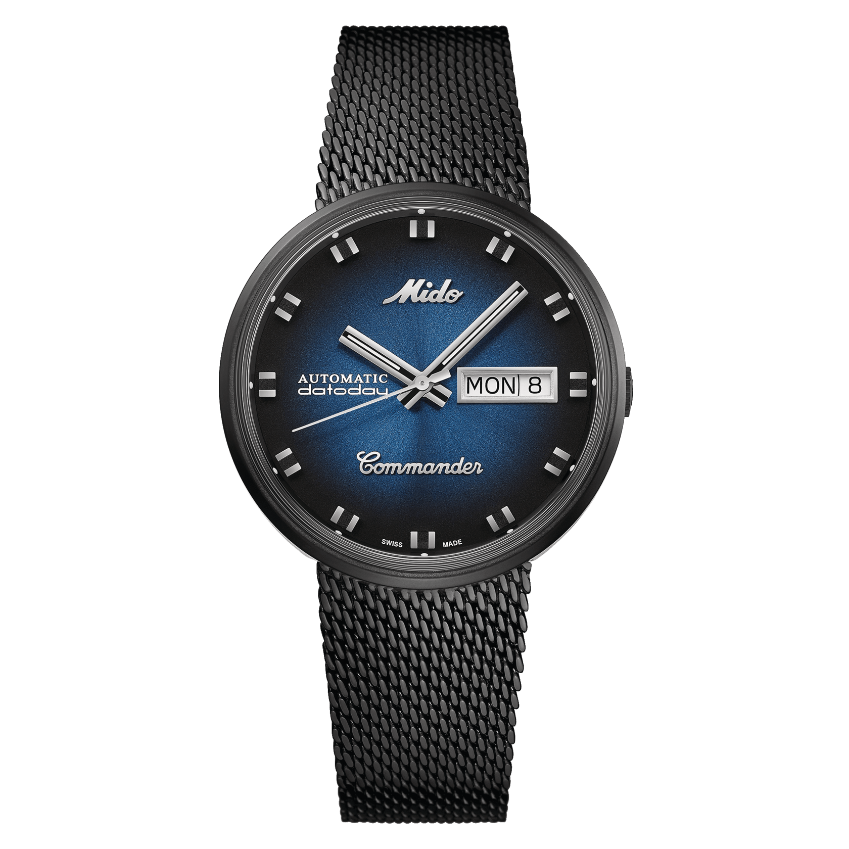 The Commander 1959 Swiss watch has been produced without interruption since that year. The integrated bracelet and the vintage Mido logo are typical of this iconic model as well as the monocoque case housing an automatic movement.
