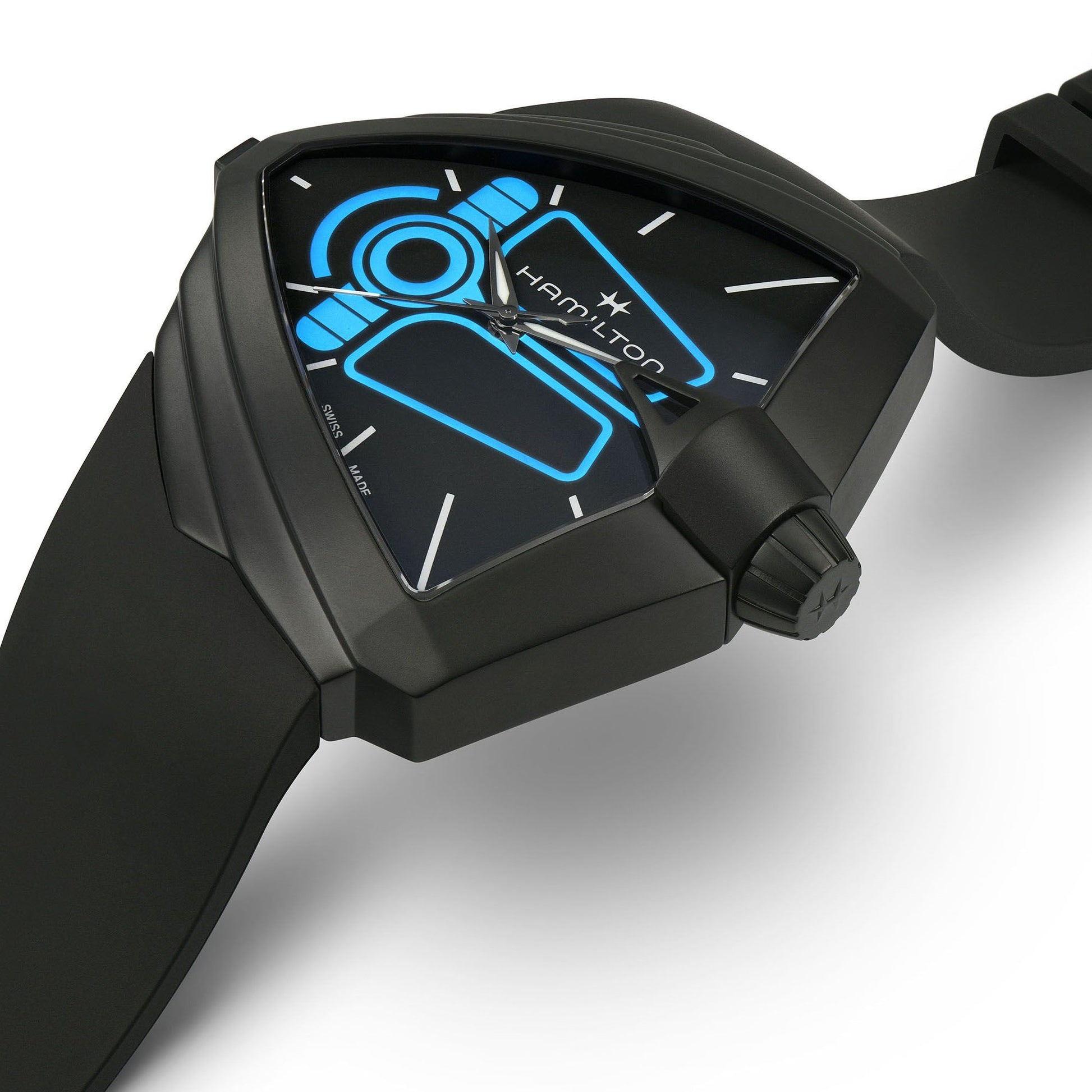 The Ventura XXL Bright Dune limited edition is inspired by the wrist device created by Hamilton for the film “Dune: Part Two”, fulfilling filmmaker Denis Villeneuve’s vision for the next chapter in the epic cinematic experience. The luminous, alluring blue dial is a reference to the unmistakable blue eyes of the Fremen people. A button on the left side of the Ventura XXL Bright case activates the glowing blue lines, replicating the “Desert Watch” dial design. This limited edition piece comes with a commemorative packaging inspired by the film that fans of the films and books, as well as collectors, won’t want to miss! Inspired by Dune Part Two (2024)