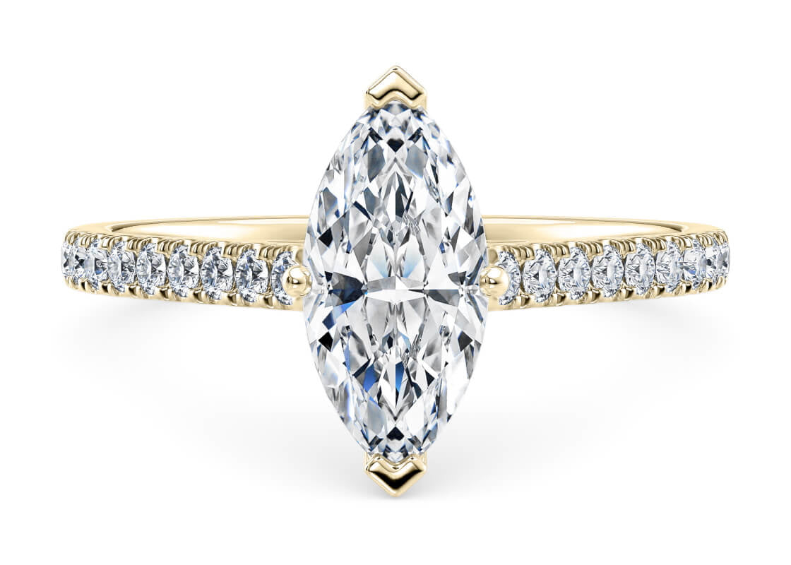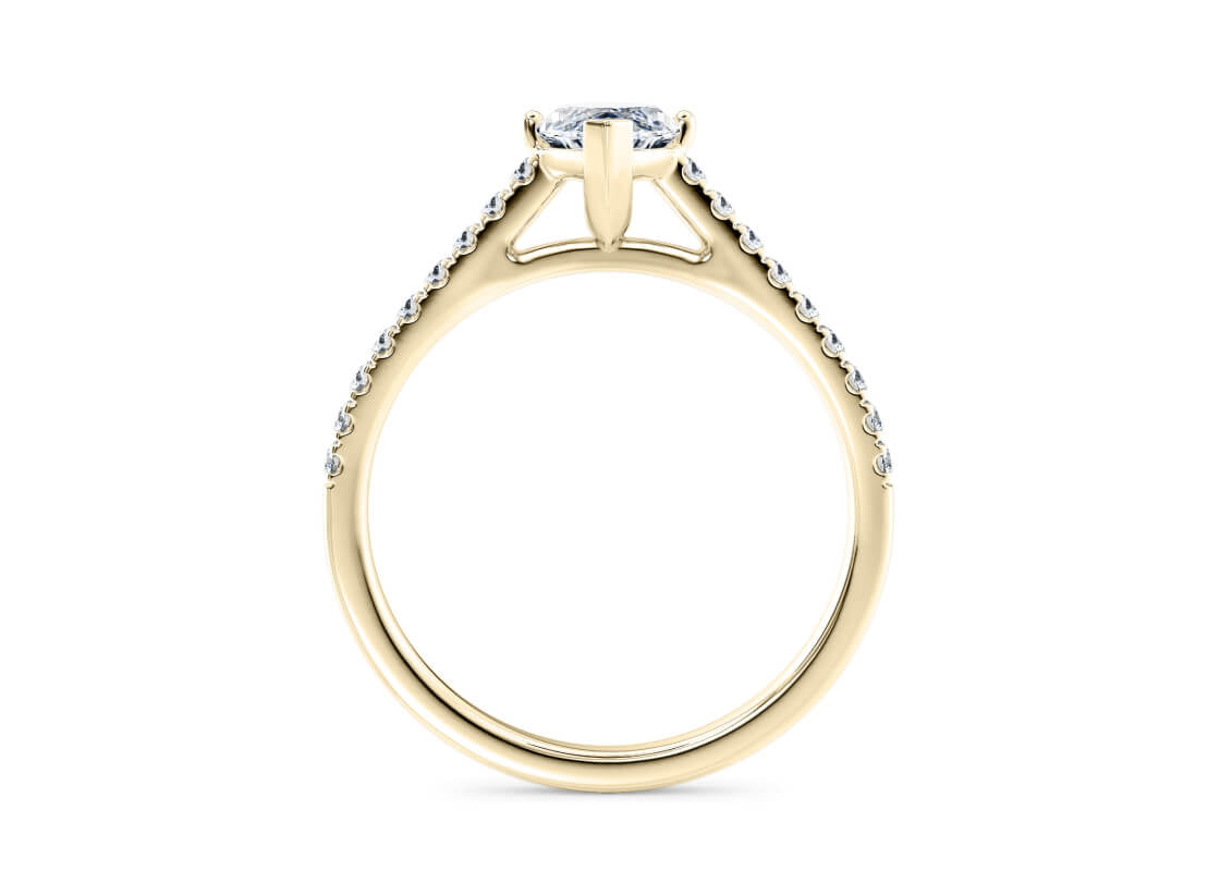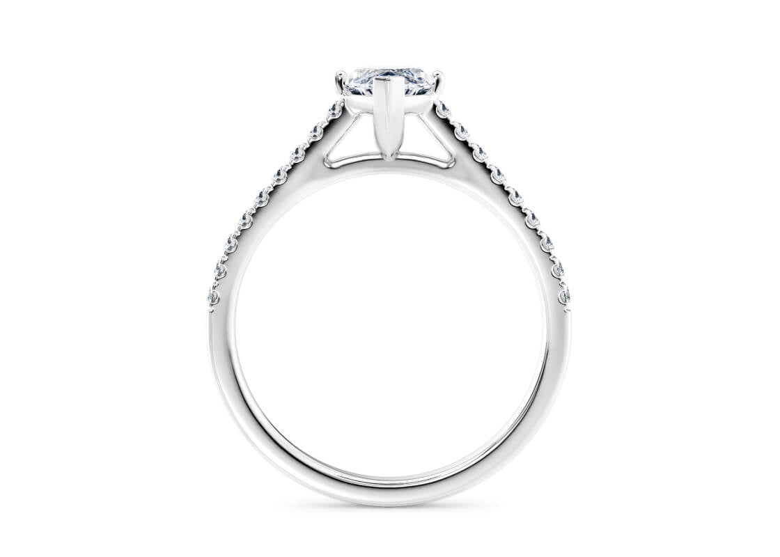 A vintage take on our classic 1477 design. With a diamond-set raised band, see your centre stone elevated in a luxurious setting. Nestled securely within a six-claws, your jewel will offer glimmering displays of light.