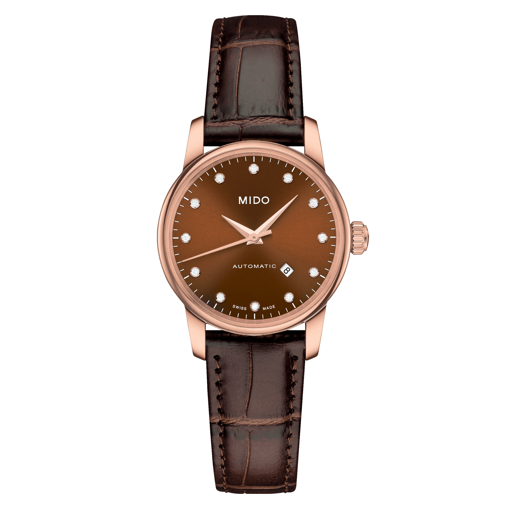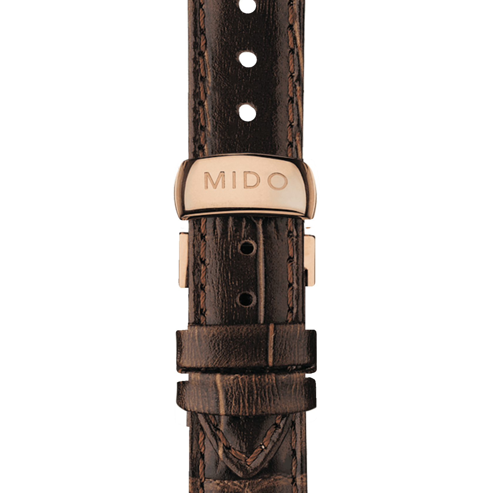 The Baroncelli Tradition Swiss watch honours MIDO's watchmaking heritage in its most timeless form. The harmonious lines and subtles curves bestow both a rare sense of elegance and tradition on this classical collection. Fitted with latest-generation technology, the automatic movement can be admired through the transparent case back.