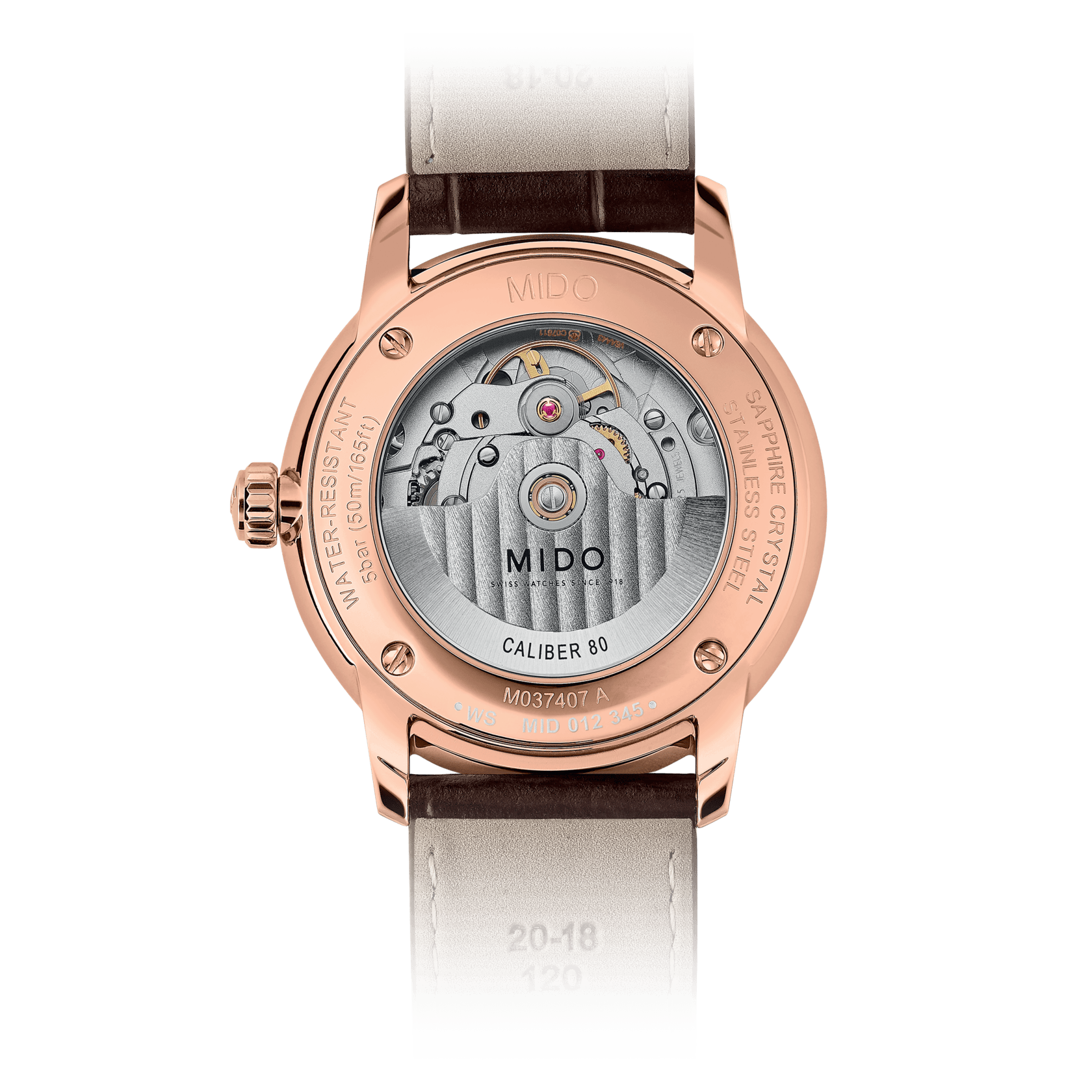 With the Baroncelli Signature MIDO has created a mechanical and aesthetic success that is a perfect expression of its watchmaking know-how. Intensely chic and timeless, this Swiss watch houses an automatic movement enhanced with a balance-spring in Nivachron™. A guarantee of superior precision, it reduces the effect of magnetic fields, as well as withstanding shocks and the effects of time.