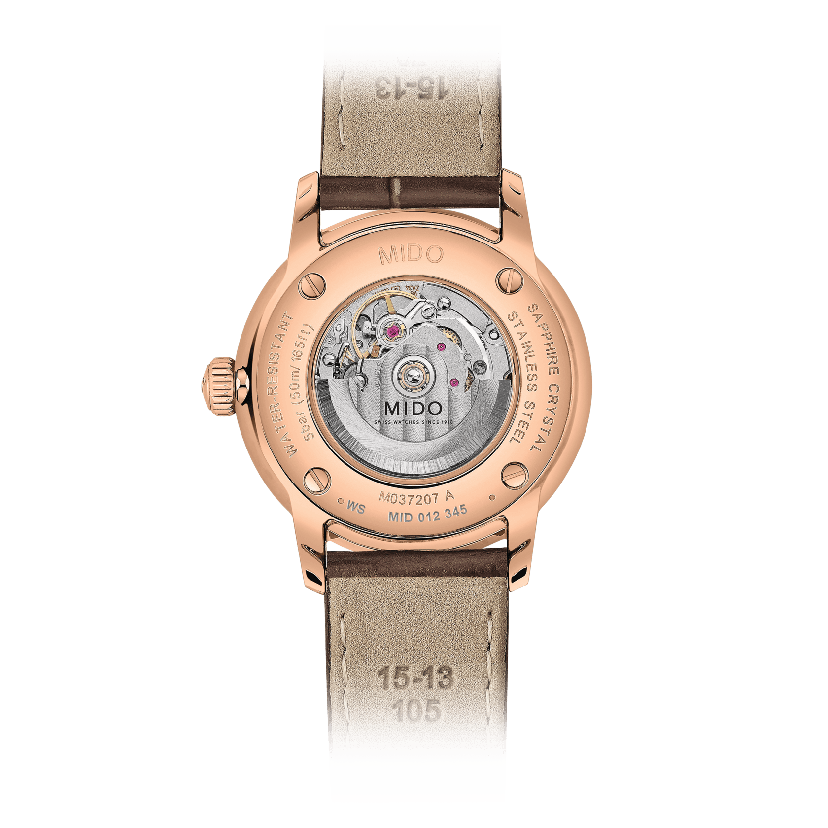 With the Baroncelli Signature, MIDO has created a mechanical and aesthetic success that is a perfect expression of its watchmaking know-how. Intensely chic and timeless, this Swiss watch houses an automatic movement enhanced with a balance-spring in Nivachron™. A guarantee of superior precision, it reduces the effect of magnetic fields, as well as withstanding shocks and the effects of time.