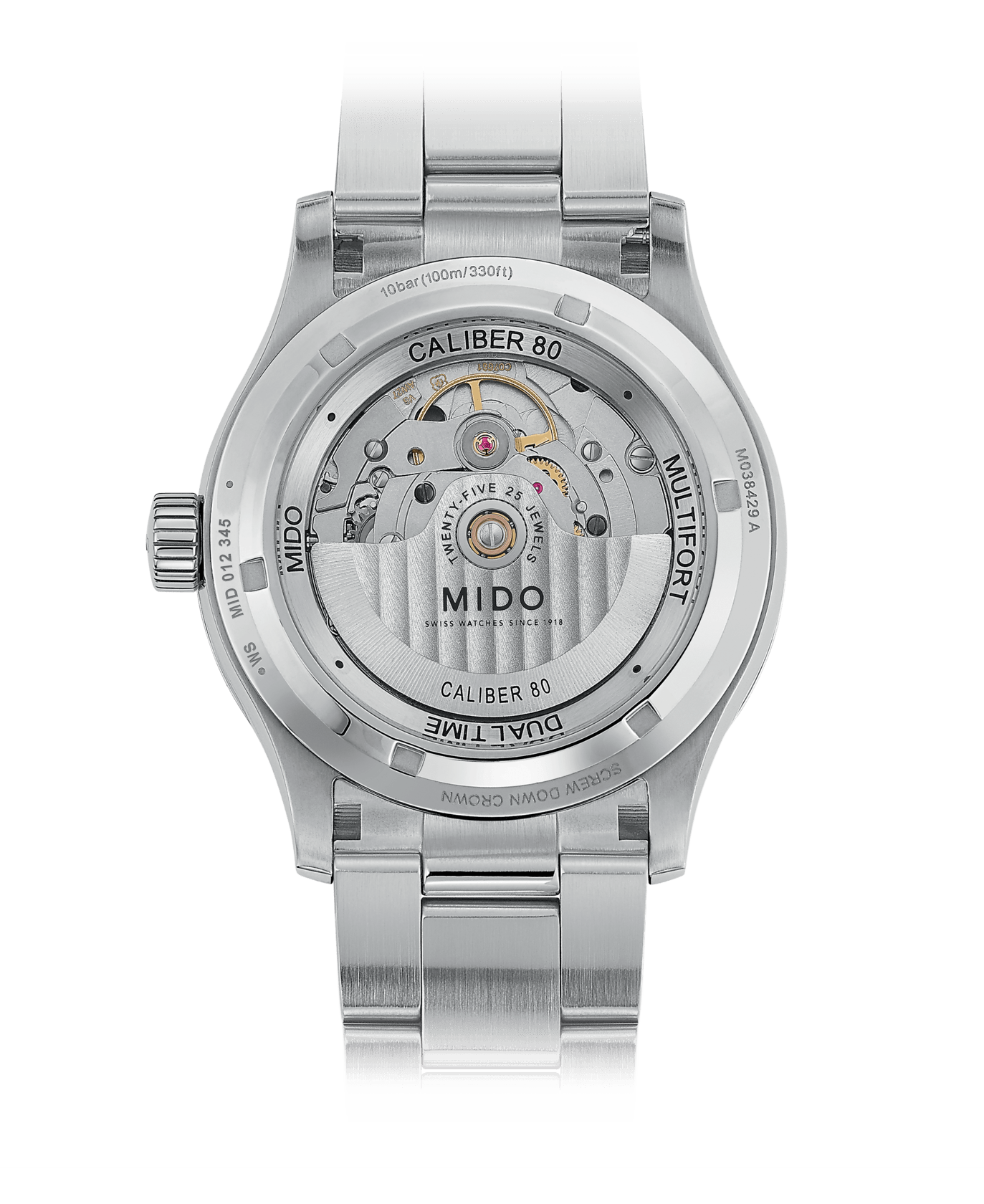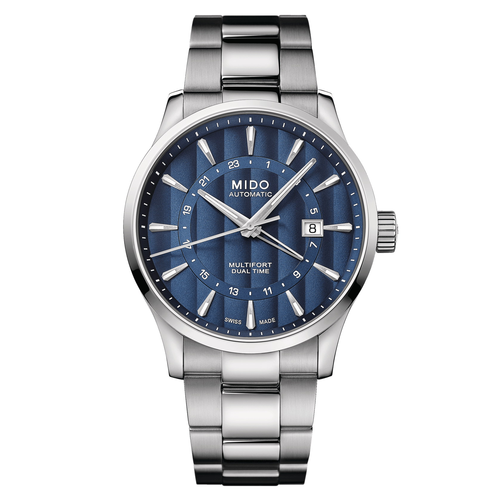 The Multifort GMT is a characterful Swiss watch equipped with a second time zone. The automatic timepiece has a sporty and timeless elegance appealing travellers and watch connoisseurs. While preserving the DNA of the Multifort collection, the aesthetic codes have been updated with wider Geneva stripes to deliver a pure design with excellent legibility.