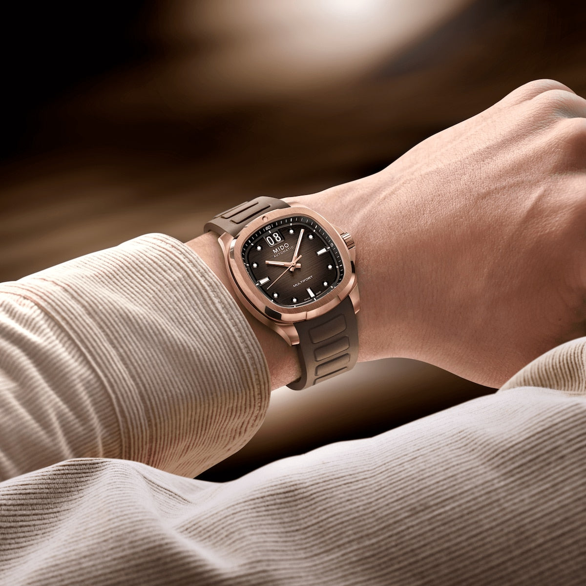 A brilliant flashback! Born from MIDO's extraordinary heritage, the TV-shaped case returns to the centre stage for the Multifort TV Big Date, as intense as it is precise, thanks to its formidable mechanical movement. The modern and dynamic design of this Swiss watch is underlined by a striking horizontal brushed finish dial and, along wtih its distinctive function: the BIG DATE at 12 o'clock. Its formidable latest-generation automatic movement, Calibre 80 is equipped with a high-tech balance spring in Nivachron™ which offers outstanding resistance to shocks and magnetic fields.