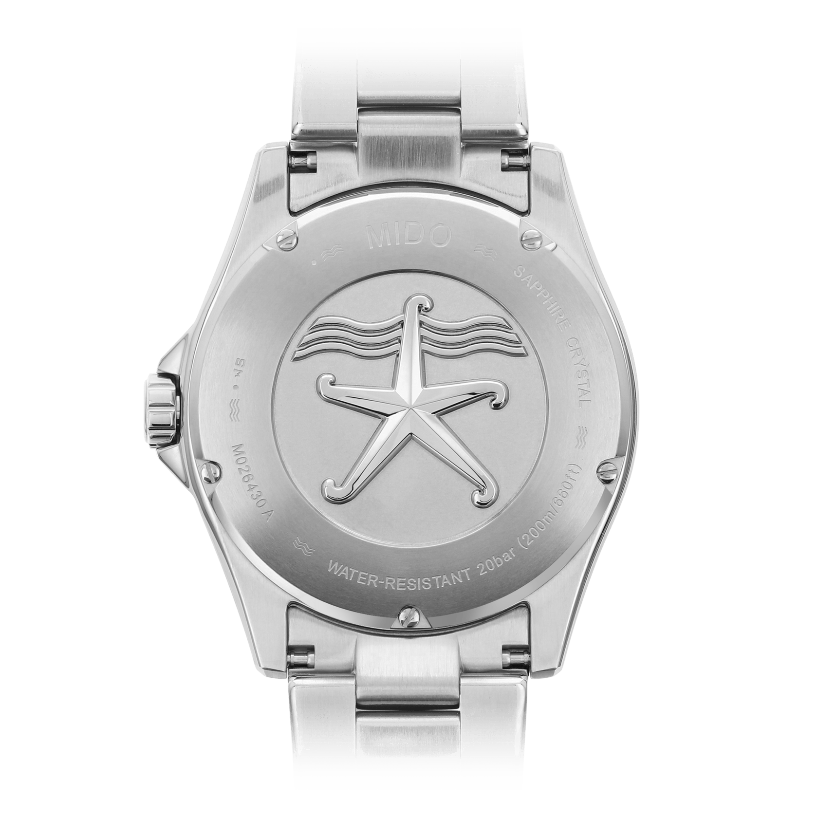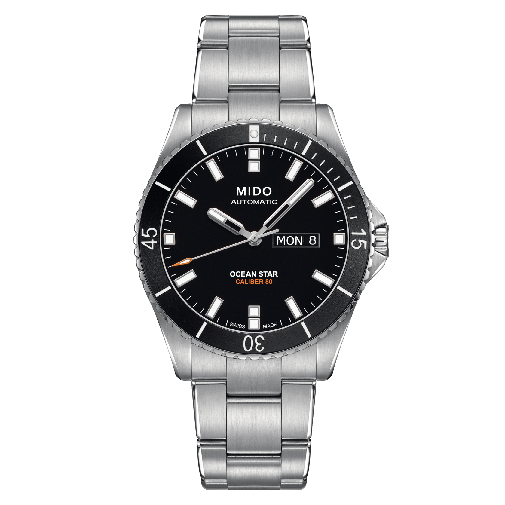 The dial of the Ocean Star 200 diving watch offers indexes filled with Super-Luminova® and skeletonised hands. The indexes at 6 and 12 O'clock feature two points for easier readability in the water. This sporty Swiss watch is water resistant up to 20 bar (200 m/656 ft), with the case shape providing extra protection for the screw down crown. The screw down case back is engraved with the Ocean Star logo. Furthermore, the housed automatic movement has an autonomy of up to 80 hours.