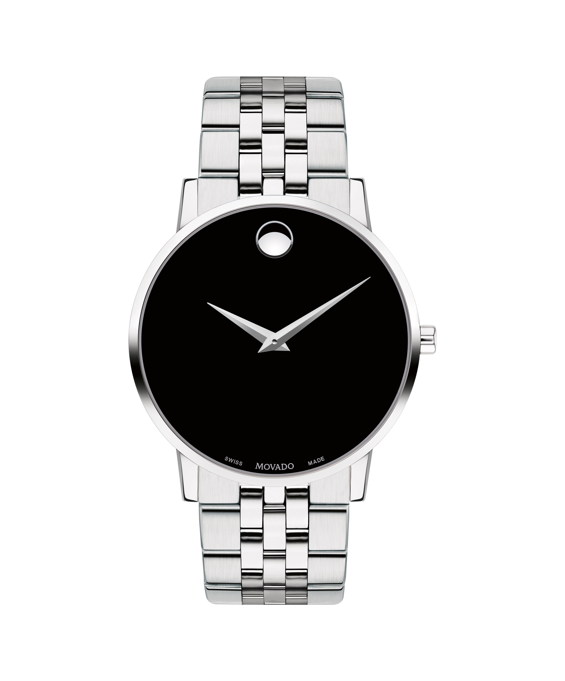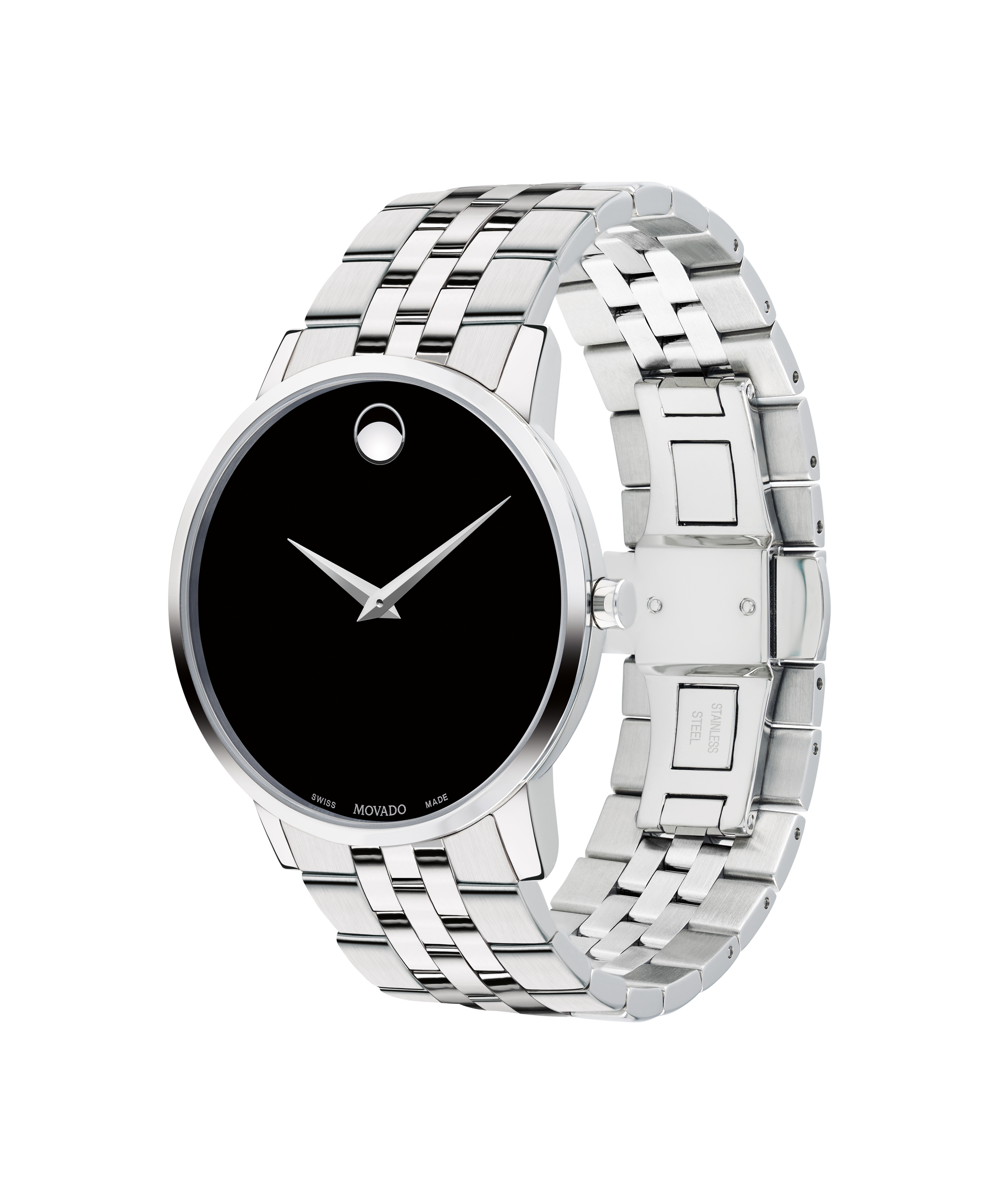 Men's Museum Classic watch, 40 mm stainless steel case, black Museum dial with silver-toned dot and hands, stainless steel link bracelet with deployment clasp.