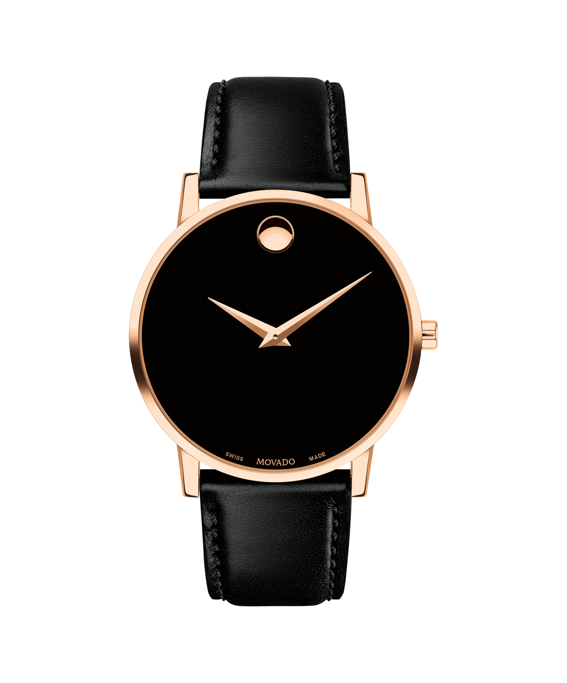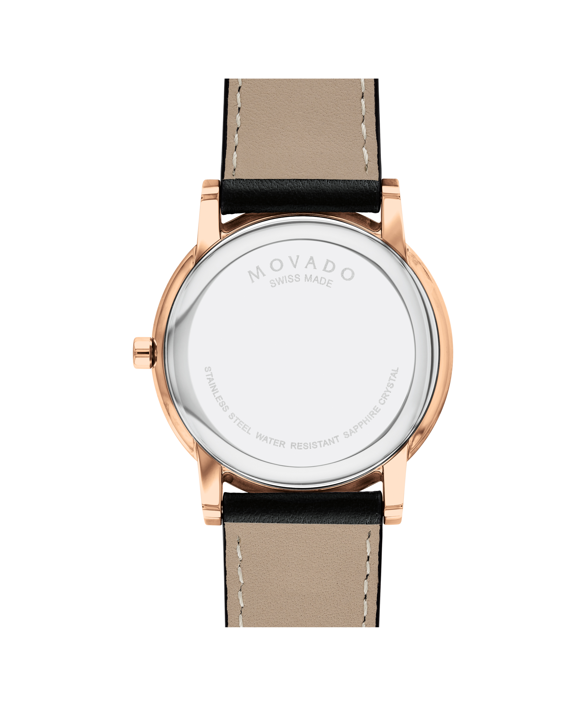 Men's Museum Classic watch, 40 mm rose gold PVD-finished stainless steel case, black Museum dial with rose gold-toned dot and hands, black calfskin strap with rose gold PVD-finished stainless steel buckle.