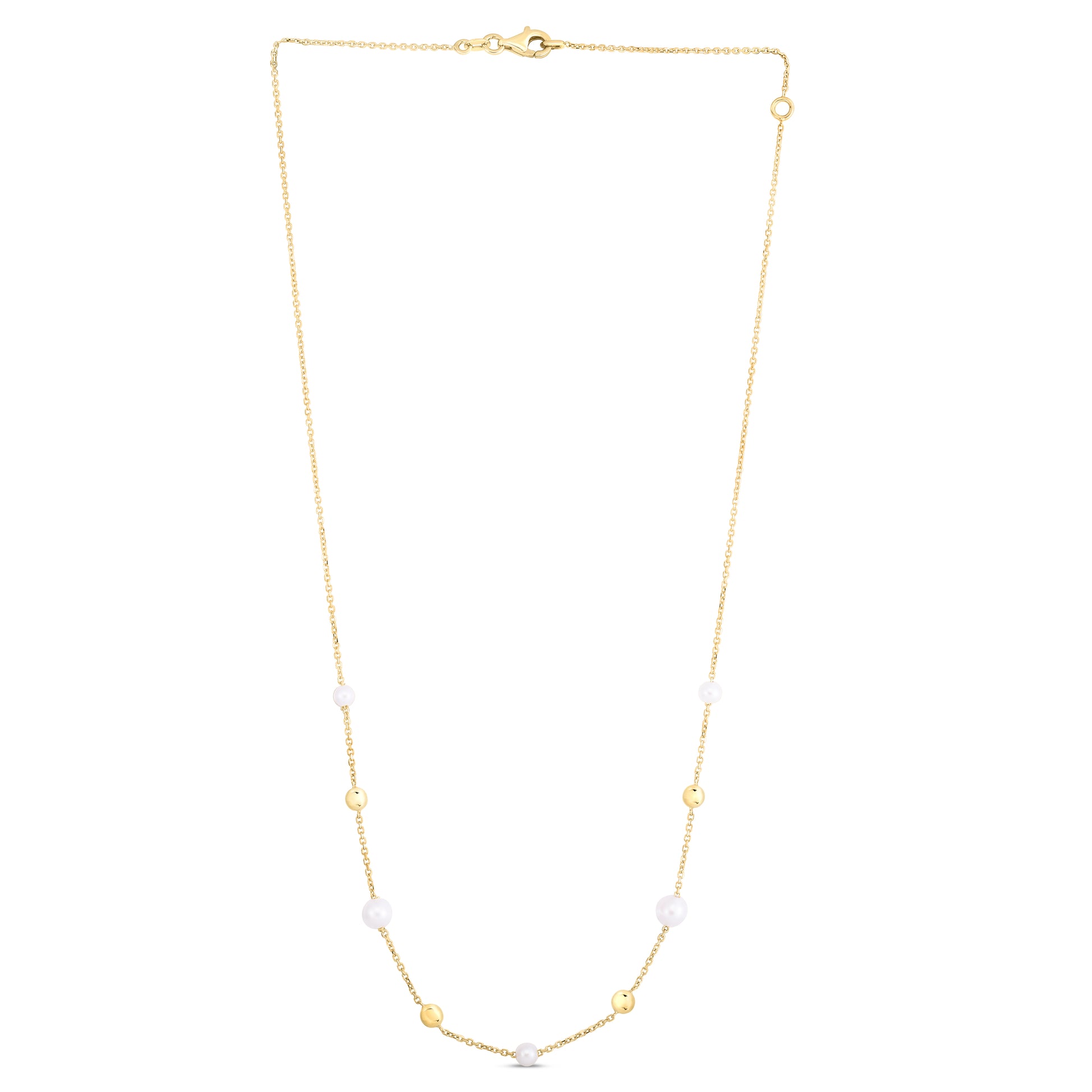 14K Yellow Gold & Pearl Polished Tin Cup Station Necklace with Lobster Clasp. Total length 18 with jump ring at 16.