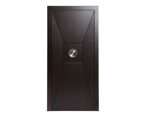 Made to protect your most precious valuables in style. The Mahogany Churchill is a truly one of a kind piece lined in black suede and adorned with silver hardware accents. A luxurious safe wrapped in black pebble leather and incased in a striking mahogany wood cabinet in a satin finish.