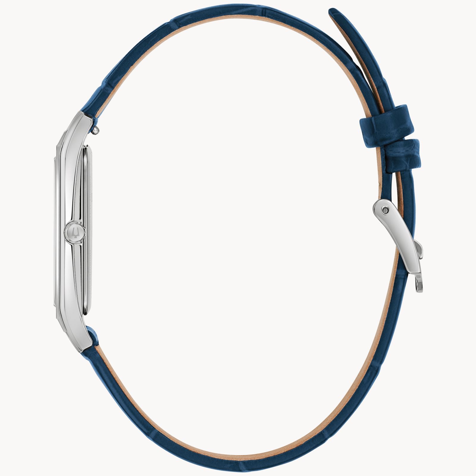 The rectangular men’s Sutton is the new paragon for classic elegance. Crafted with a sleek geometric design with brushed and polished finishing, the slim silver-tone stainless steel case is set with a sapphire crystal and features thoughtfully incorporated angles and lines for an impactful presence on the wrist.... The textured blue dial’s hobnail pattern provides an iconic look, while the alternating silver-tone baton and Roman numeral markers convey a timeless quality. The dial is further appointed with a 6 o’clock date display and polished silver-tone hands. The watch is carefully paired with a blue embossed leather strap fitted with a pin buckle closure. Elevate your style with the slim and stylish rectangular Bulova Sutton.