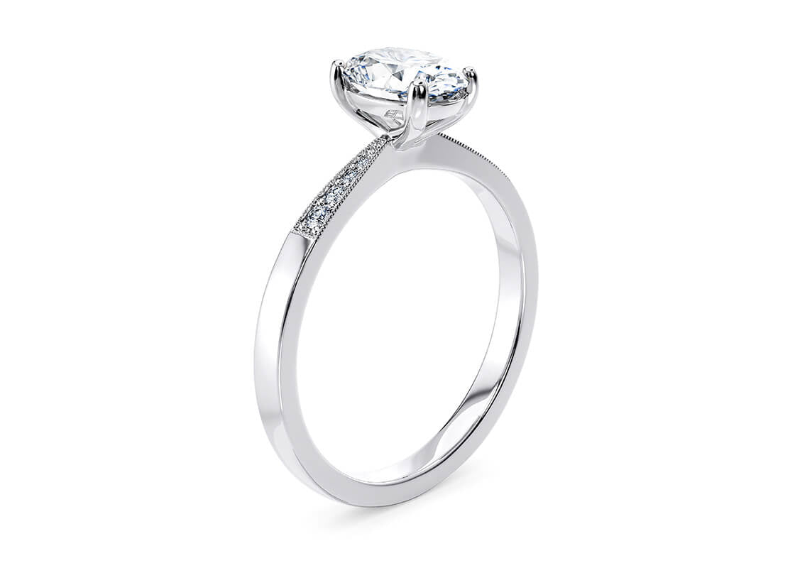 One of our most loved designs, the finesse of Delicacy Vintage is rarely matched. With tapered micro-set diamonds, see your centre stone beautifully nestled in an exquisite surround, and enhanced through fine milgrain detailing.