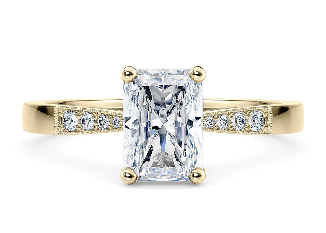 One of our most loved designs, the finesse of Delicacy Vintage is rarely matched. With tapered micro-set diamonds, see your centre stone beautifully nestled in an exquisite surround, and enhanced through fine milgrain detailing.