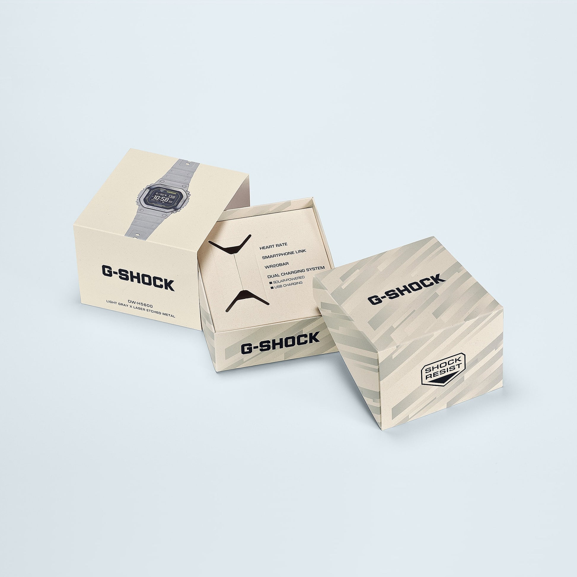 Take control of your workouts and make everyday life smoother with this new timepiece from the tough, sports-oriented line of G-SHOCK MOVE watches. The top bezel is made of metal, with laser-engraved mode and feature markings. Together with the strength and passion of the black and red G-SHOCK brand colors, the metal design projects the look of a piece of high-tech sports gear. This multi-sport watch comes packed with the same utility as the DWH5600 base model — all the functions you need to track running, walking, and an kind of workout. The optical sensor measures your heart rate and blood oxygen level and the accelerometer counts your steps. You can tap into the Polar™ smartwatch library to analyze workouts, track post-sleep recovery, and support breathing exercises. The high-resolution memory-in-pixel (MIP) LCD ensures an easy read, and USB and solar-assisted charging make sure you’re always ready to go. The band is made with bio-based resin, a material expected to help reduce environmental impact. Work, sports, play — the G-SHOCK MOVE DWH5600 has your back whatever your day may bring.